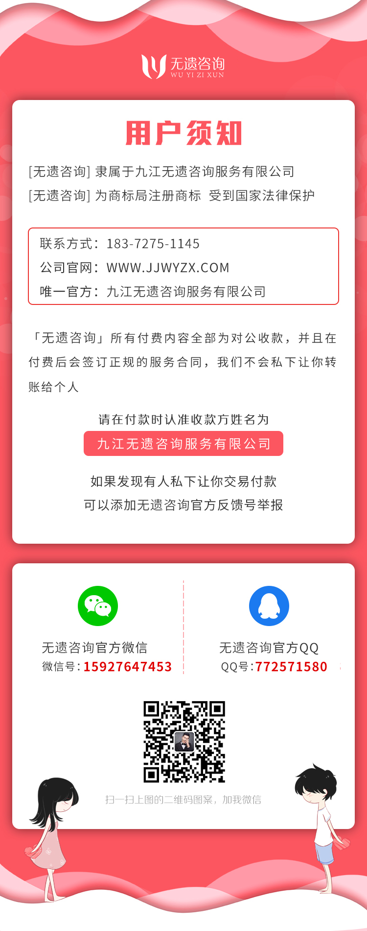 作为一个专注情感服务的公司,无遗咨询成立的初衷在于改变不健康的两性情感相处方式,为传播健康的婚恋价值观,尽可能帮助更多人提升收获幸福的能力。无遗咨询一直不遗余力引领情感咨询行业规范化,阳光化,秉承真诚、专业、可信赖的服务宗旨,力所能及为社会的进步和发展作贡献。